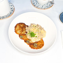 Драники с бефстроганов из говяжьего языка