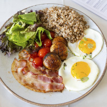 Яичница с беконом, помидорами, гречневая каша