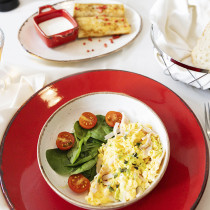Скрэмбл с ветчиной. Блины с творогом